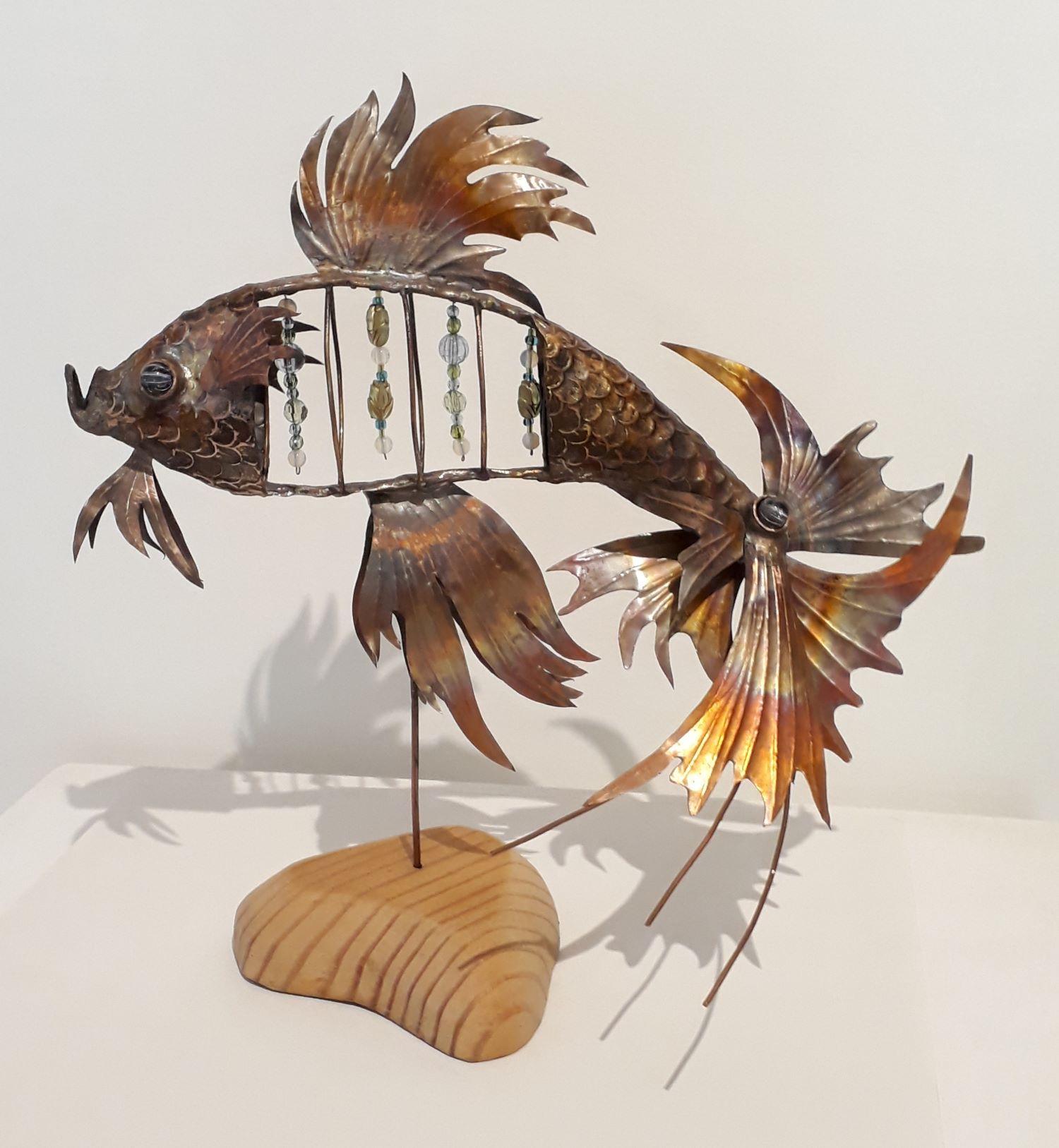 Recyled Copper and Beads on Natural Timber.